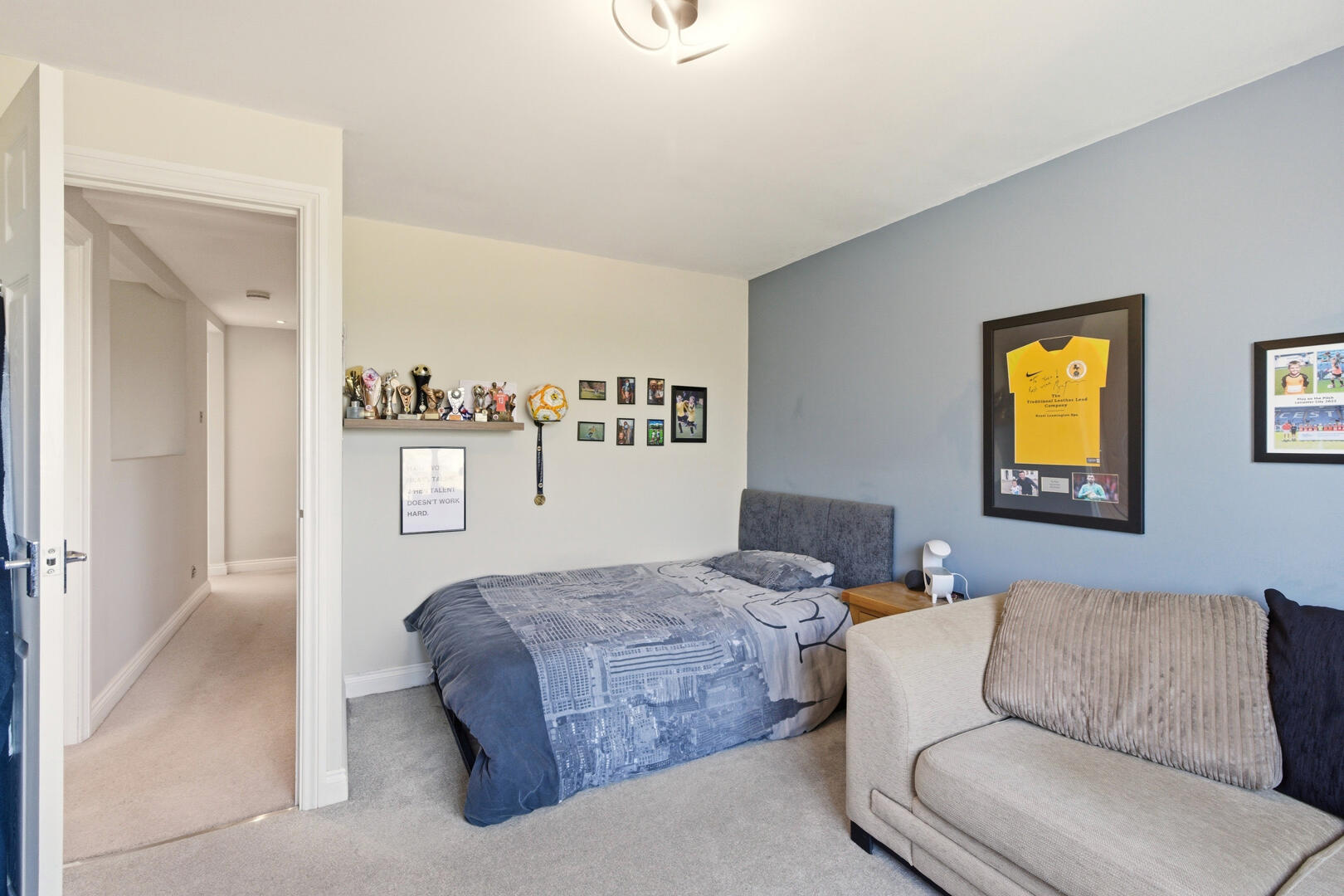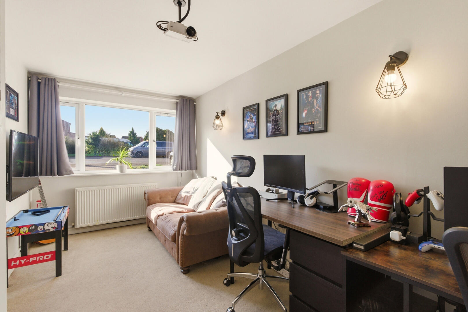 Upstairs, the accommodation is arranged around a central landing and includes three bedrooms and a separate office/study, offering flexible space for family life or home working. The principal bedroom benefits from an en-suite shower room, while the remaining bedrooms are served by a well-appointed family bathroom.