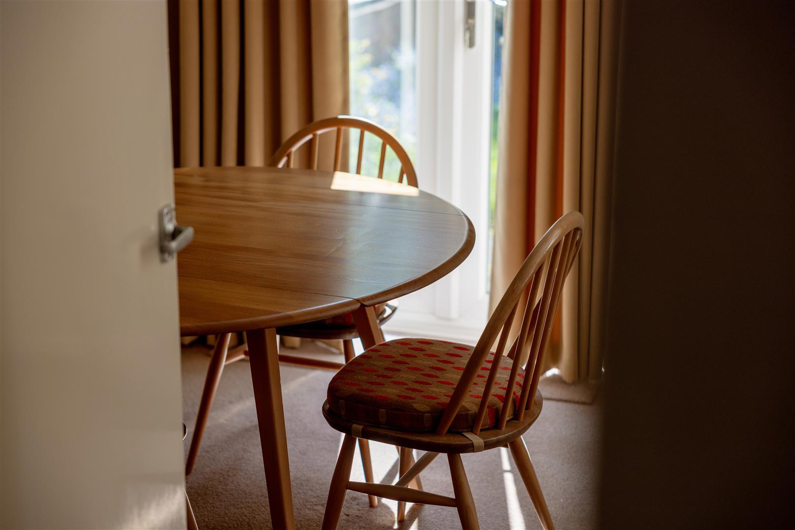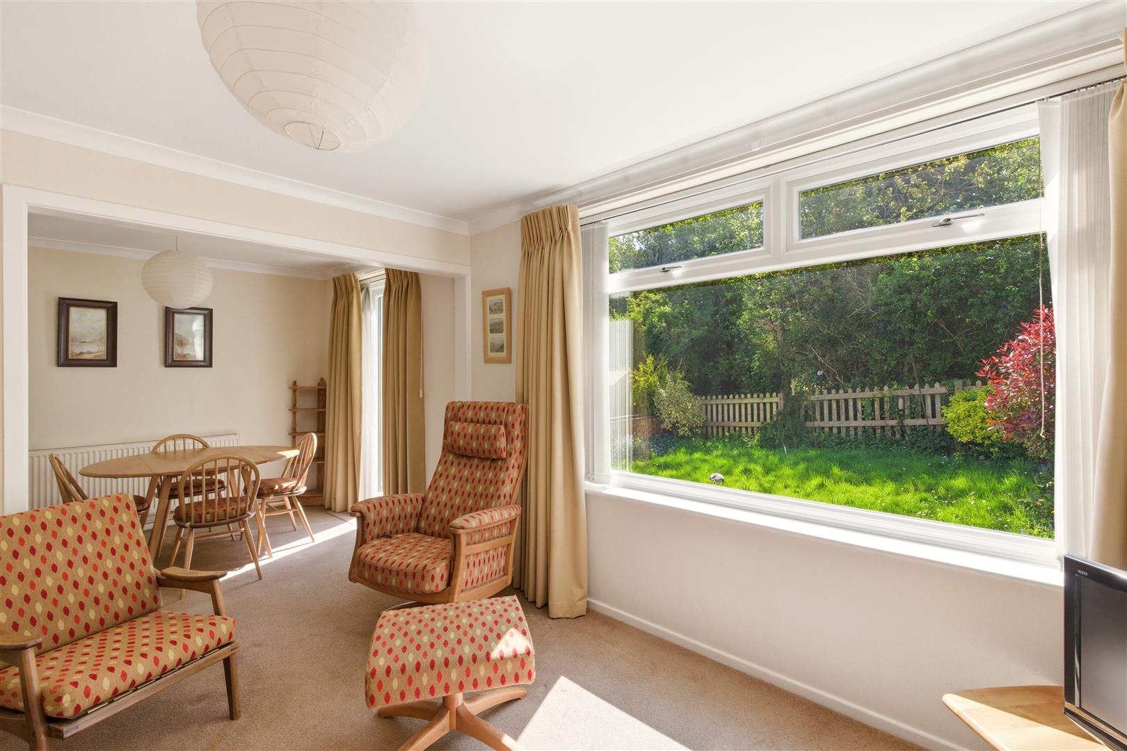 To the rear, the living spaces are particularly appealing. A generous sitting room spans the width of the house, with a wide picture window drawing in natural light and providing a lovely outlook across the garden, creating a calm and private atmosphere. Adjacent, a separate dining room connects easily, with potential to open up the layout if desired.