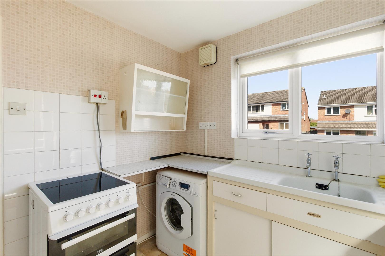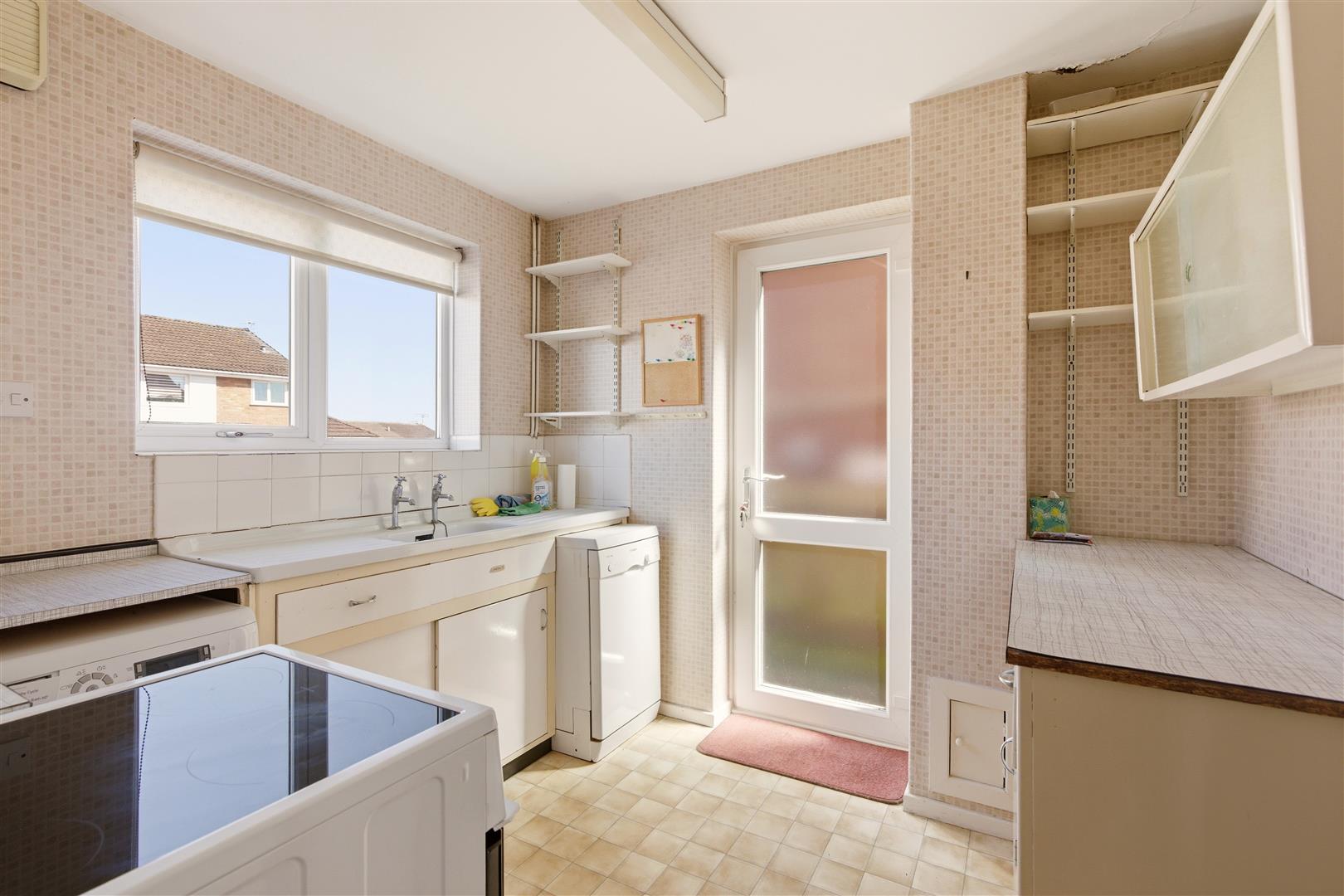 The house sits behind a driveway with off-road parking and an integral garage, leading into a central hallway. The kitchen is positioned to the front of the house, neatly arranged and functional in its current form, yet offering clear scope for redesign and modernisation.