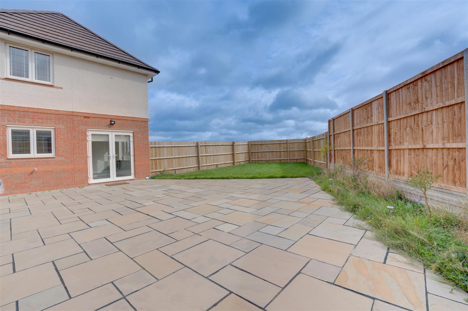Step inside to a bright entrance hallway leading to a lounge on one side and a bright open-plan kitchen and dining area on the other, the kitchen is complete with integrated & stand alone appliances. French doors from the dining space lead directly to the impressive rear garden, featuring a generous patio and neatly landscaped lawn, ideal for entertaining, relaxing, or family life.