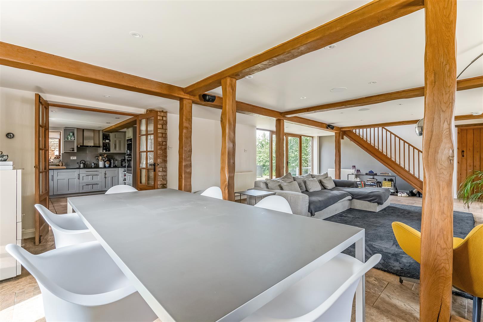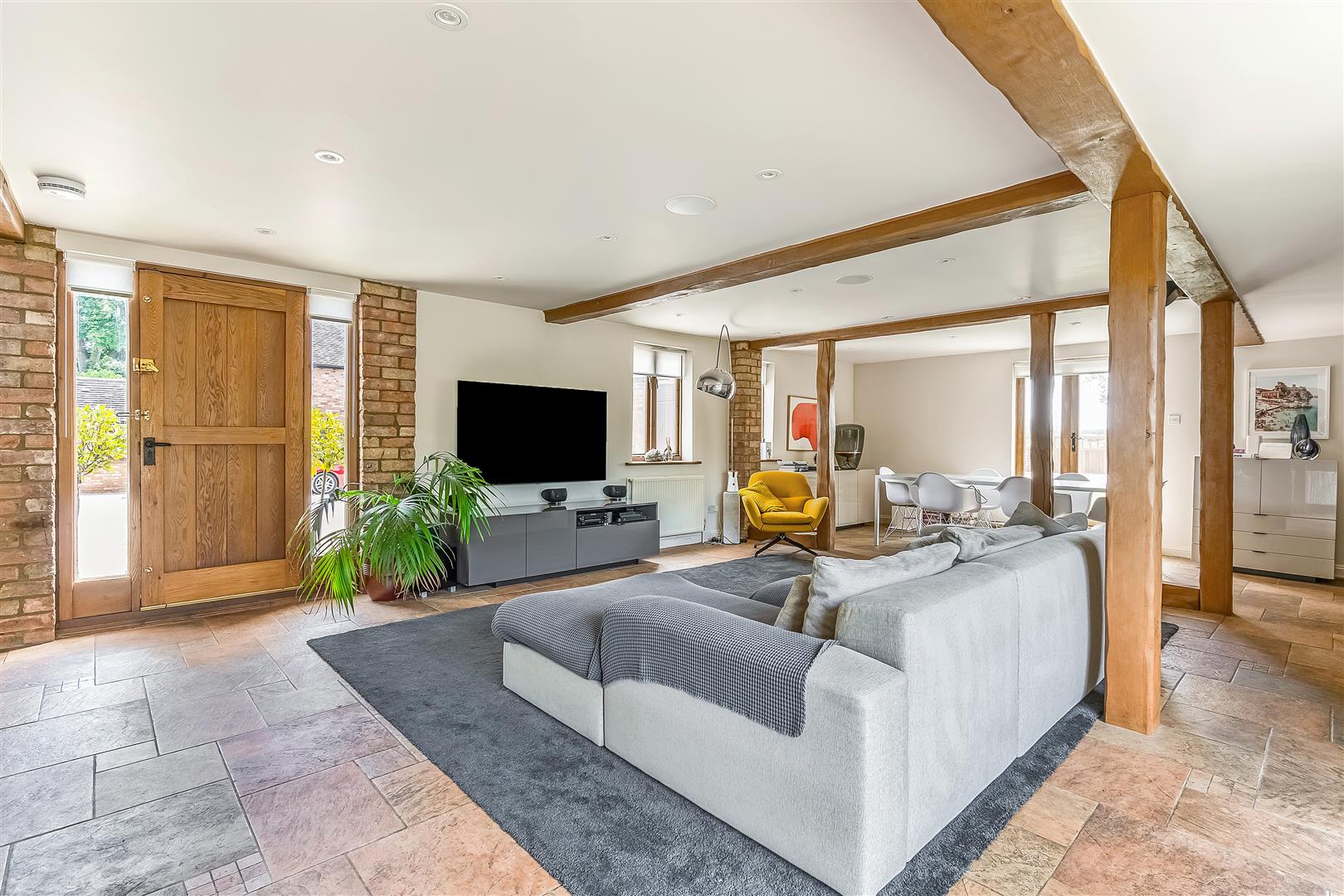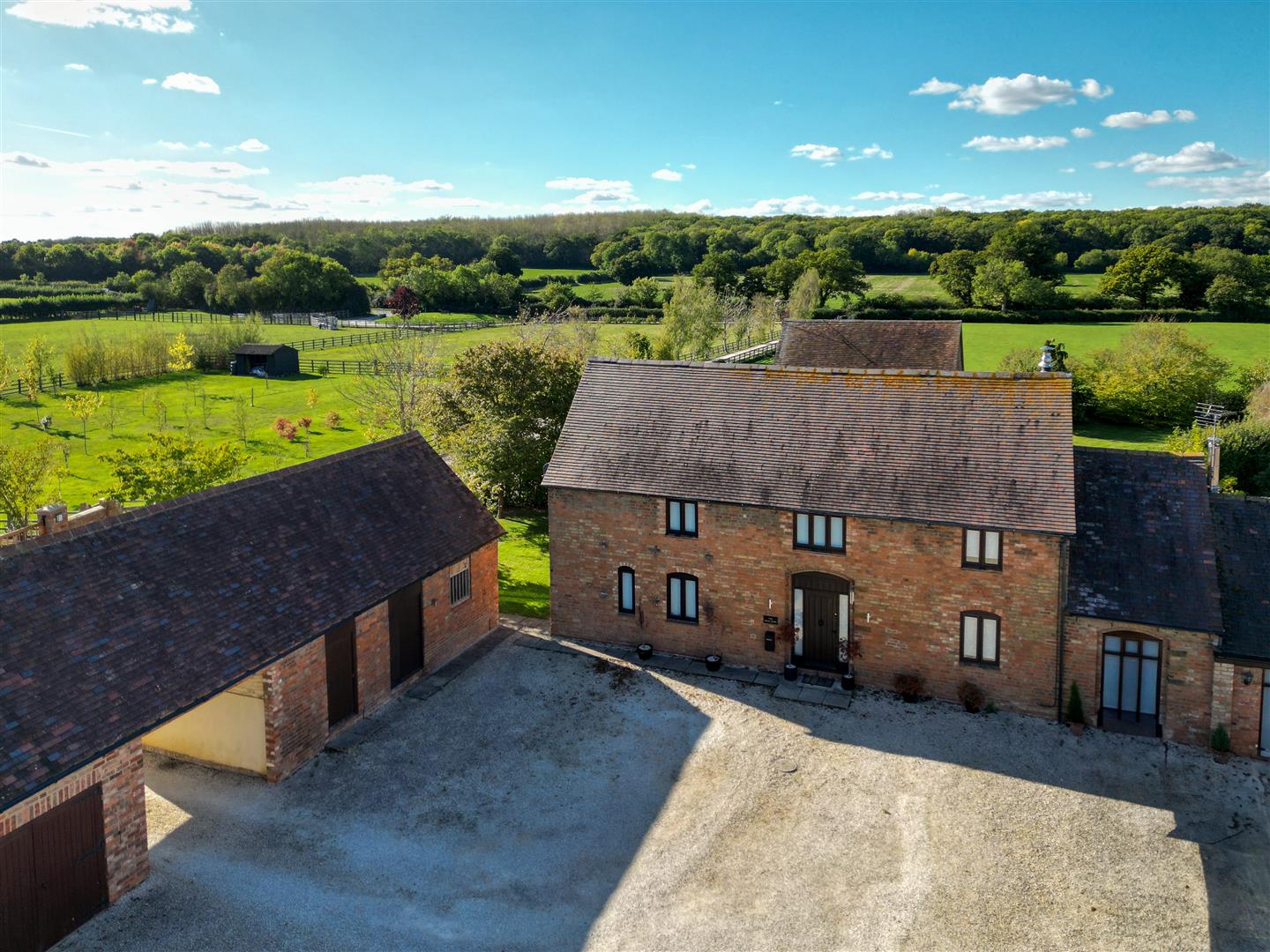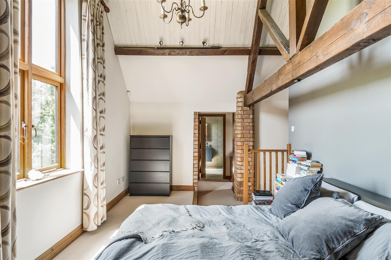 This fabulous barn conversion called 'High Barn' is surrounded by paddocks and open countryside. This semi-detached property boasts a host of character features including exposed beams and brick detailing and an expansive brick fireplace whilst mixed seamlessly and complemented by modern additions including a handsome wooden staircase and matching doors, large timber framed windows and stone-tiled floors.