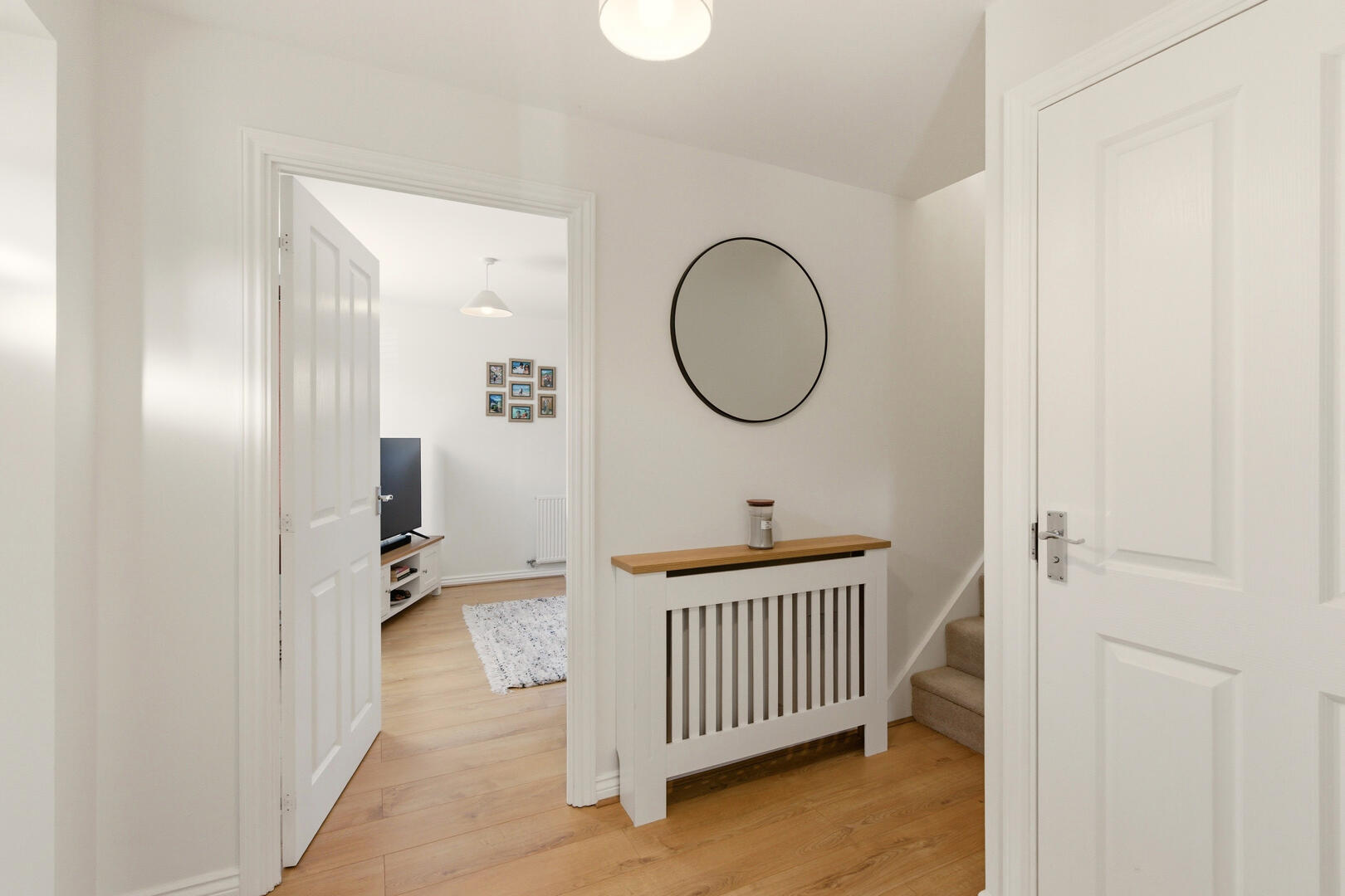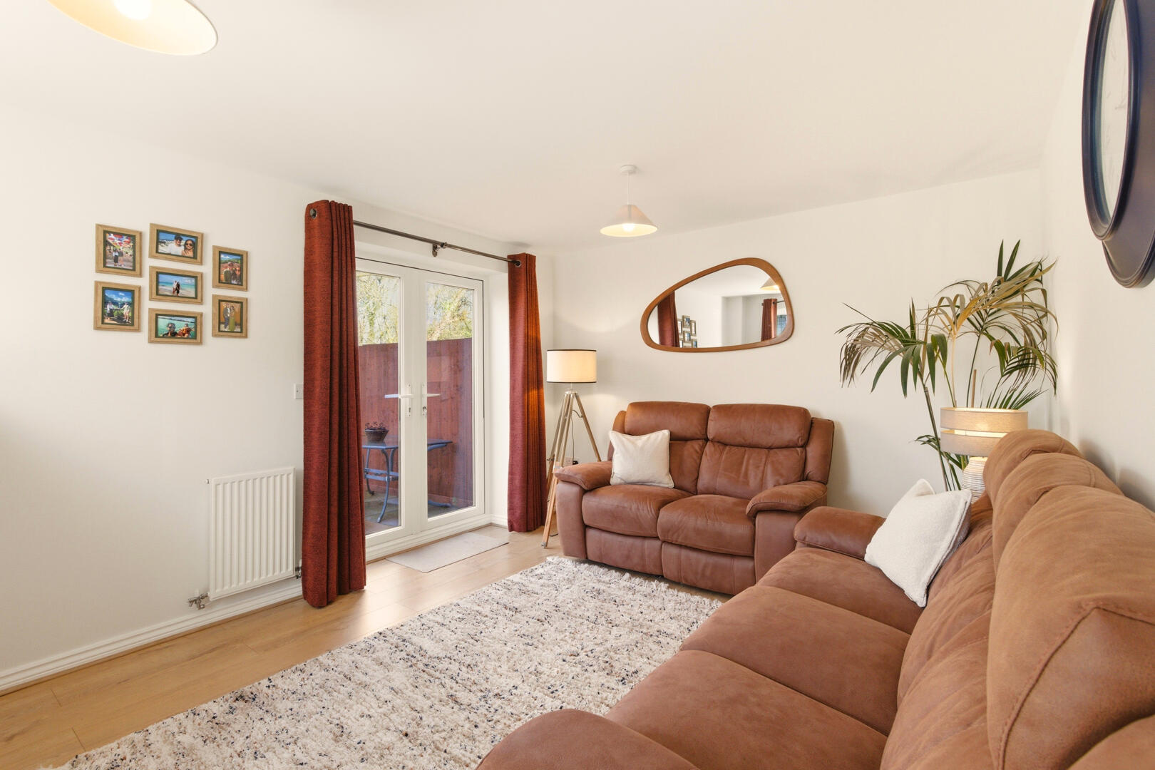 This beautifully presented three-bedroom home is tucked away in a quiet cul-de-sac setting, offering well-balanced accommodation ideal for modern living. The ground floor comprises a bright and spacious living room, a fitted kitchen with adjoining dining area, and a useful utility cupboard, formerly a WC, which offers excellent potential to be easily reinstated if desired.
