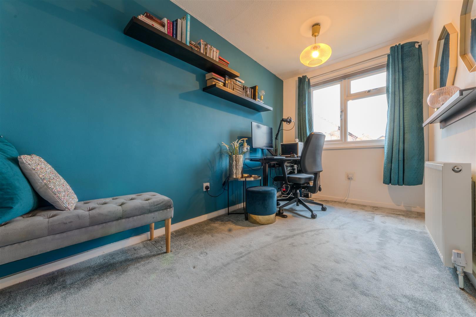 Upstairs there are two generous double bedrooms and a good-sized single, along with a family bathroom featuring a white suite and shower over the bath.