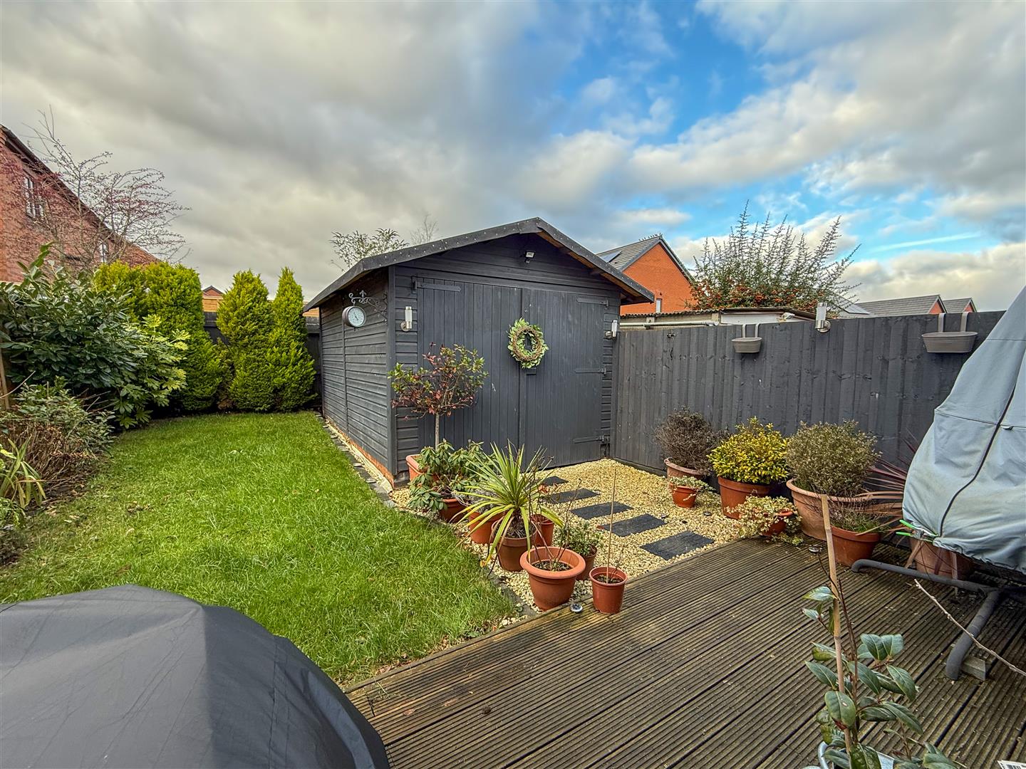Externally the property benefits from a block paved driveway to the front providing off road parking for two vehicles. To the rear is a well-maintained garden with a large shed offering additional storage.