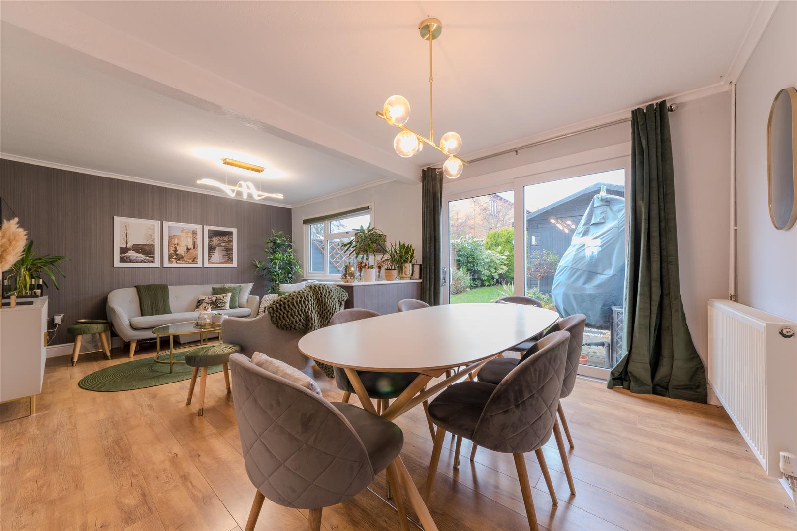 Upon entrance there is a hallway with useful storage housing space for a washing machine and dryer, a downstairs cloakroom, and a fitted kitchen with a front aspect. To the rear of the property is a spacious lounge diner extending across the width of the house, featuring sliding patio doors providing direct access to the rear garden.
